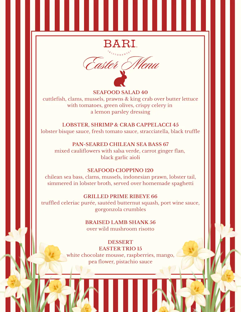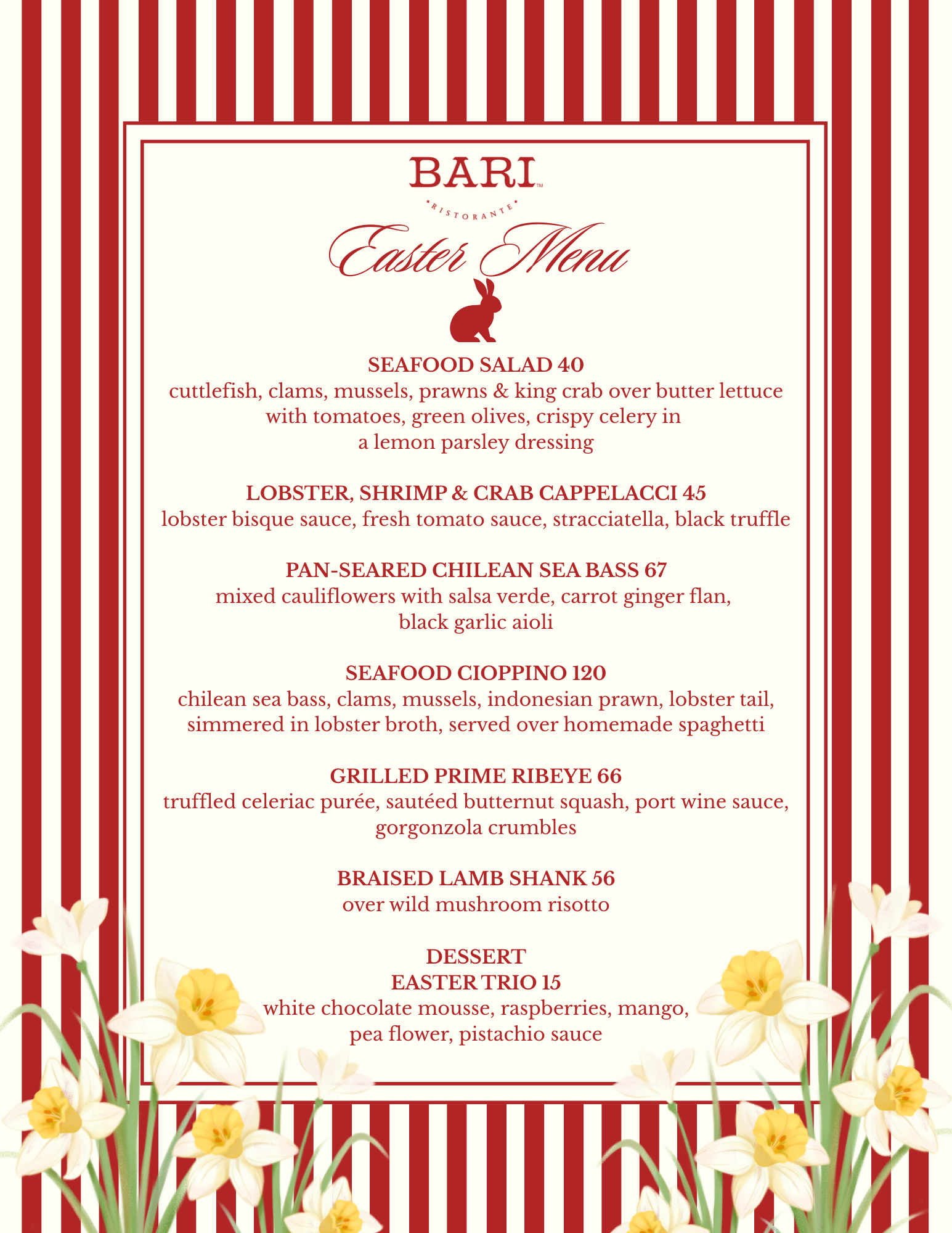 EXTENDED BRUNCH ON EASTER SUNDAY FROM 11 AM TO 4 PM